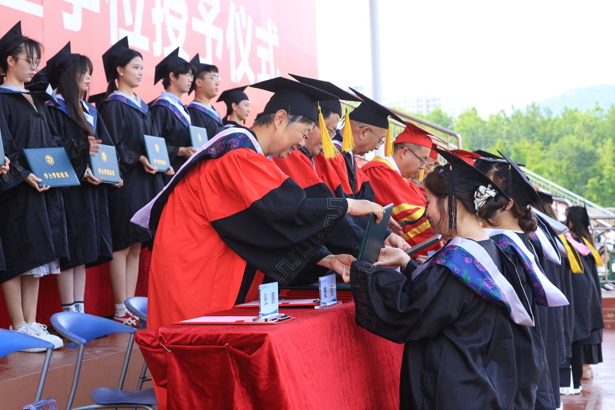 06-19/2025我校隆重举行2025届毕业典礼暨学位授予仪式仲夏蝉鸣,骊歌响起。6 月18 日,我校在体育场隆重举行 2025 届毕业典礼暨学位授予仪式。毕业生们身着学士服,怀揣对大学生活的眷恋与对未来的憧憬,携手师长同窗,共同亲历这一人生中的重要时刻,典礼现场洋溢着青春的朝气和离别的温情。学校领导、校学位评定委员会委员代表、毕业生家长代表以及各二级学院、各部门的领导老师出席毕业典礼,一同见证这场梦想启航的盛会。毕业典礼在庄严的国歌声中拉开帷幕。毕业典礼由常务副院长张鹏主持。... -